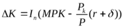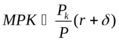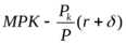Реальный доход от сдачи в аренду единицы капитала равен его реальной цене R/P. Реальная цена совпадает с предельной производительностью капитала MPK.
