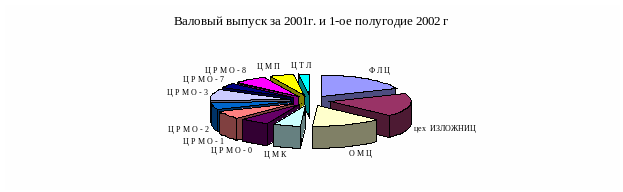 Структура производства по цехам ЗАО "МРК" за 2001 год и 1-ое полугодие 2002 года