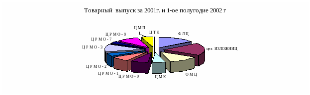Структура товарного производства по цехам ЗАО "МРК" за 2001 год и 1-ое полугодие 2002 года