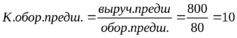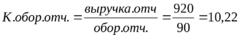 определяем коэффициент оборачиваемости в отчетном и предшествующем периоде.