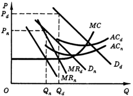 Предположим, что монополист может разделить рынок своей продукции на два сегмента, причем переток товара с одного сегмента на другой невозможен. Рис. 2,а отражает спрос на продукцию монополиста на сегменте с более эластичным, а рис. 2,б - на сегменте с менее эластичном спросом.