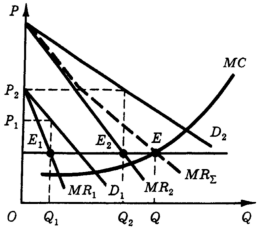 Рис. 2. Предельная выручка монополии на сегментированном рынке.