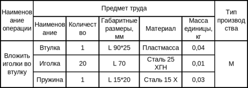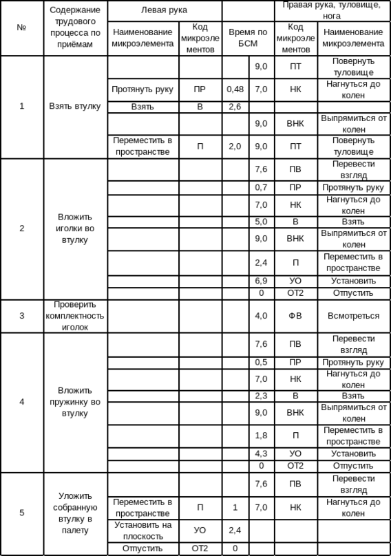 2.1 На основе исходных данных производится расчленение приёмов на трудовые движения (микроэлементы) и определяется продолжительность трудового процесса при существующей системе организации рабочего места. Полученные данные записываются в таблицу 2.2.