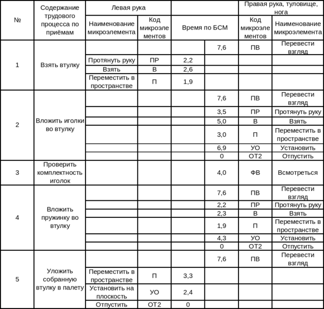 Цель работы: овладение навыками рационализации рабочих мест и трудовых процессов с помощью микроэлементных нормативов.