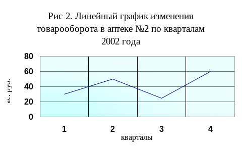 Линейные графики показывают динамику (изменение) того или иного экономического показателя и выглядят как прямые, кривые, ломаные линии. Например,