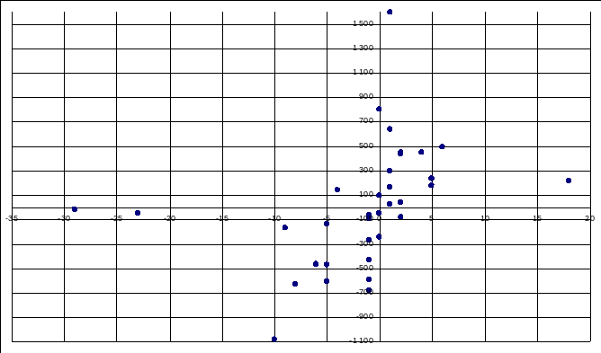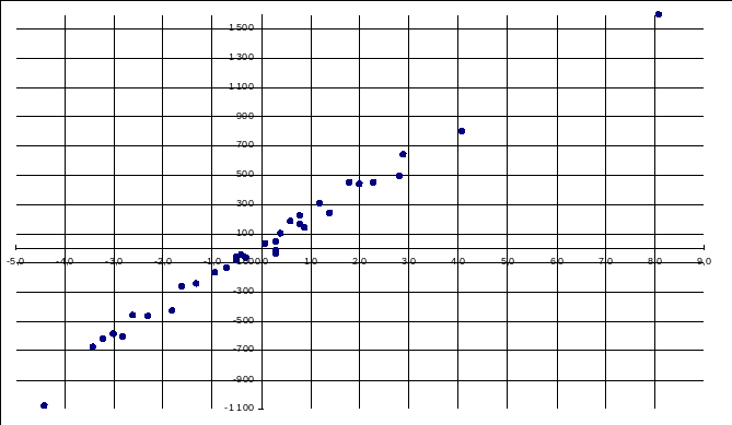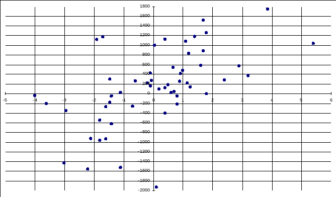 По проведении первоначальных исследований поквартально уравнение регрессии имело слишком маленький коэффициент корреляции (r=0,39, когда необходимо, чтобы r®1). Это произошло в результате значительного отклонения исследуемых величин от нормативного по причине воздействия внешних факторов (основной - финансирование).