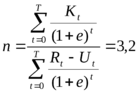 Срок окупаемости инвестиций n – это минимальный временной интервал от начала вложения инвестиций до момента, за пределами которого интегральный экономический эффект будет не отрицательным, то есть период, начиная с которого первоначальные капитальные вложения и другие затраты, связанные с инвестиционным процессом, покрываются суммарными результатами от функционирования предприятия. Срок окупаемости инвестиций определяется по формуле: