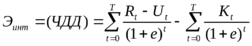 В качестве показателя интегрального экономического эффекта используется величина чистого дисконтированного дохода. Она определяется как превышение значений интегральных результатов над интегральными затратами, дисконтированных к начальному периоду: