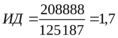 Индекс доходности определяется отношением суммы дисконтированных эффектов к дисконтированному объему инвестиций за тот же расчетный период: