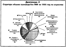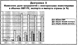 арактеризует эффективность проводимой инвестиционной политики деятельность предприятий с участием иностранного капитала. Несмотря на сокращение численности действующих ПИИ (предприятий с иностранными инвестициями) (с 1951 до 1910) за год, их вклад в создание валового внутреннего продукта страны в 1999 году остался практически на уровне 1998 года и составил 13% (диаграмма 3).