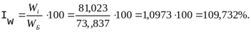 Показатель доли прироста продукции в результате роста производительности труда dВ (в %) определяется по формуле: