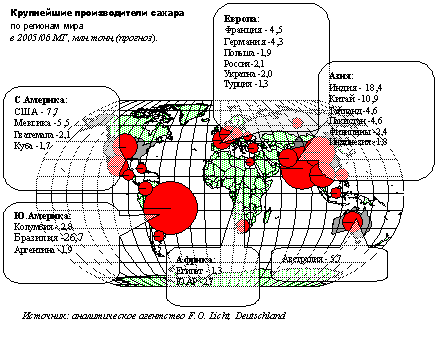 Рынок сахара всегда был привлекателен благодаря своей капиталоемкости и динамичности в плане ценовой конъюнктуры. Сахар - стратегический продовольственный товар и в то же время - сырье для многих предприятий пищевой промышленности. Сегодня около двух третей мирового объема сахара приходится на тростниковый. Именно на его основе формируются мировые цены. Кроме того, в мире активно проводится торговля его полуфабрикатом - сырцом, который после несложной технологической процедуры превращается в белый сахар.