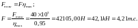 3) Расчётная сила на штоке с учётом потери мощности на трение в цилиндре. Это фактическое усилие, развиваемое цилиндром: