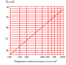5. Вычисляем индекс изоляции воздушного шума межквартирной железобетонной панели: