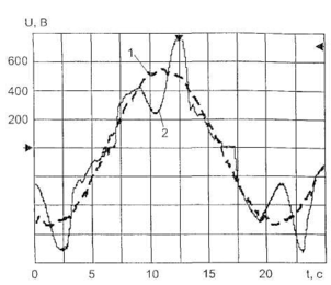При работе инвертора на RL-нагрузку ток в цепи изменяется экспоненциально. Площади положительных и отрицательных периодов не равны, так как на резистивной компоненте нагрузки в противофазные периоды рассеиваются разные мощности.