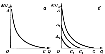 - при повторном акте потребления полезность каждой единицы блага уменьшается по сравнению с ее полезностью при первоначальном потреблении.