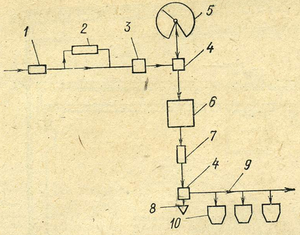 Где: 1 – бункер сырого дробленного угля, 2 – сушилка, 3 – мельница, 4 – центральный бункер готовой пыли, 5 – насос для пыли, 6 – расходный бункер, 7 – вентилятор, 8 – топка парогенератора, 9 – промежуточный бункер, 10 – шнек для пыли.