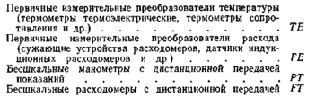 В обозначении каждого прибора, входящего в комплект данной схемы измерения или регулирования, первая буква всегда одна и та же. Она показывает измеряемую или регулируемую величину