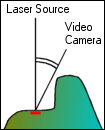 Лазерный луч в единичный момент времени образует на сканируемой поверхности светящуюся точку, которая фиксируется матрицей видеокамеры. При формировании лучом лазера строчки на измеряемой поверхности, на матрице фиксируется размытая (градиентная) кривая, которая затем фильтруется по точкам с максимальной интенсивностью свечения. Из этих точек с максимальной интенсивностью свечения формируется облако.