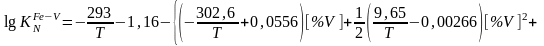 Дана залежність дозволяє розраховувати рівноважні вмісти азоту в залежності від температури і вмісту ванадію в сплаві на основі заліза.