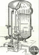 Термохімічна внутрішньокотельна обробка води. Термохімічне зм'якшування забезпечує часткове зм'якшування води і збільшує період роботи між чищеннями казана від накипу в 3-4 рази. Воно полягає в наступному. Живильна вода поступає в реактор 2 (мал.6) каскадні типи, розміщений в паровому просторі казана, і нагрівається в ньому до температури 4 насичені пара. Пухирці пари, що підіймаються, захоплюються розтрубом 4. В зігнутій трубі 3 перекачуючи контури утворюється легка пароводяна емульсія яка підіймається по ній і поступає в реактор.