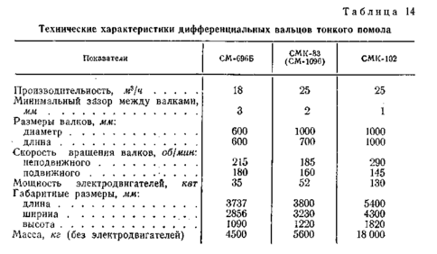 Вальцы тонкого помола СМК-83 (СМ-1096) отличаются от вальцов СМ-696Б большими размерами валков, меньшей скоростью их вращения и несколько повышенной мощностью электродвигателя.