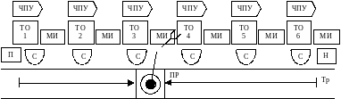ТО – технологическое оборудование; ЧПУ – устройство числового программного управления; МИ – магазин инструментов; С – стол для деталей; ПР – подвижной промышленный робот; Тр – трасса ПР; П – питатель заготовками;