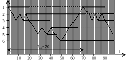 Алгоритм работы: ПР, разгрузив 1-й станок на стол перед ним, берет заготовку из питателя и загружает ею 1-й станок. Затем берет деталь с 1-го стола и переносит ее на стол 2-го станка. Дождавшись конца обработки детали на 2-м станке, берет деталь и перемещается к 3-му станку и загружает его, затем возвращается ко 2-му станку и загружает его. После чего перемещается к 3-му станку, берет деталь со стола 3-го станка и движется к 4-му станку и загружает его. Затем берет деталь со стола 4-го станка и перемещается к 5-му станку и загружает его, далее берет деталь со стола 5-го станка и переносит ее на стол 6-го станка. Разгружает 6-й станок в накопитель готовых деталей, берет деталь со стола 6-го станка и загружает 6-й станок. Затем ПР движется к 5-му станку и разгружает его на 5-й стол. Затем движется к 4-му станку и разгружает его на 4-й стол, затем движется к 3-му станку и разгружает его на 3-й стол, а затем движется сразу к 1-му станку и цикл повторяется.