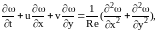 Основні рівняння - це нестаціонарні рівняння Нав’є-Стокса, перетворені у плоскому випадку до змінних завихреність - функція течії та знерозмірені відносно швидкості вільного потоку та характерного лінійного масштабу: