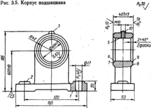 Рассмотрим сказанное на примере детали (рис.3.5), всем обрабатываемым поверхностям которой присвоены номера. Точность и шероховатость пронумерованных поверхностей различны. Поверхности, 2, 3, 4, 6, 7, 8 и 9 нуждаются в однопереходной обработке (строгании, фрезеровании или точении). Поверхность 1, являющаяся базовой поверхностью, требует применения двухпереходной обработки (чистового и чернового фрезерования).