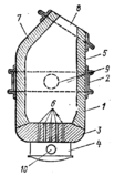 1 – корпус; 2 – опорный пояс; 3 – днище; 4 – воздушная коробка; 5 – кожух; 6 – сопла; 7 – «спина»; 8 – горловина; 9 – пустотелая цапфа; 10 – воздушный патрубок.