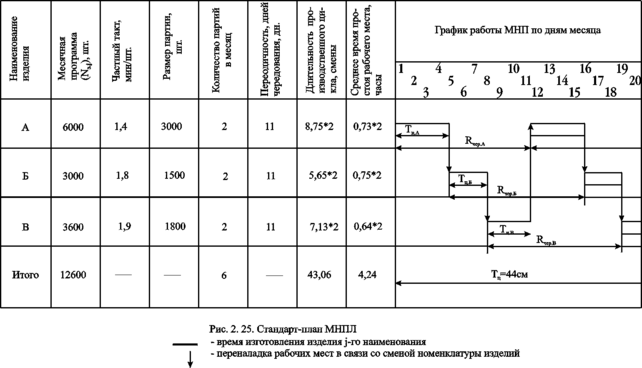 Построение стандарт-плана МНПЛ. Стандарт-план МНПЛ строится на период, равный наибольшему периоду чередования (ритму), но обычно не более чем на месяц. Пример построения стандарт-плана приведен на рис. 2.