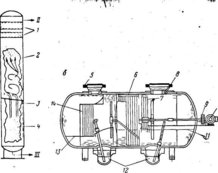 Пройдя теплообменник 3, сырой газ, охладившись еще более, снова выделяет жидкость, состоящую из воды и конденсата.