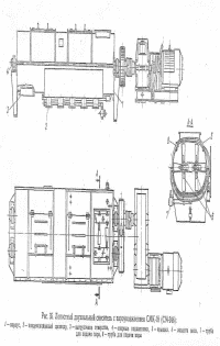 Дезинтеграторные камневыделительные вальцы СМ-150 (рис.32) служат для предварительного дробления пластичных глин и частичного удаления каменистых включений. Вальцы состоят из двух валков 1 и 2 различного диаметра π с различной скоростью вращения, из которых валок большего диаметра гладкий, а меньшего диаметра - ребристый.