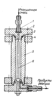 Подогретая смесь из подогревателя поступает в реактор 6 (рис. 1.4) для проведения процесса гидрогенизации. Реактор представляет собой толстостенный точеный сосуд высокого давления из стали 12Х18Н10Т, объемом О, 3 и 0,5 л на рабочее давление 30 МПа и температуру 723 К (450°С), а при регенерации катализатора в отсутствии водорода - до 82 3 К (550°С). Загрузка катализатора в реактор будет несколько меньше за счет насадки. Аппарат уплотняется обтюраторами.