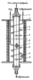 Гидрогенизат из колонны спускается в приспособление непрерывной автоматической выгрузки 16 (рис.3.12) - аппарат на давление 0,15 МПа и температуру 523 К (280°С)