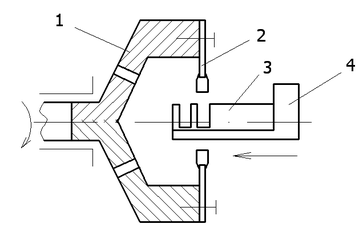 Рис.7. Установка для резки слитка на пластины: 1 – шпиндель; 2 – диск; 3 – слиток; 4 – держатель слитка.