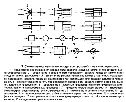 Из сказанного следует, что производственные процессы получения стекла и стеклянного волокна характеризуются большим разнообразием выпускаемой продукции и сложностью. Общей чертой этих процессов является то, что для превращения исходного сырья в шихту или полупродуктов в целевой конечный продукт - стекловолокно - необходимо большое число функционально различных ступеней подготовки и переработки. Для целенаправленного осуществления этих технологий требуются разные виды энергии, вспомогательных веществ и информации, так называемые параметры процесса. В литературе принято деление параметров на входные, управляющие, возмущающие и выходные.