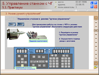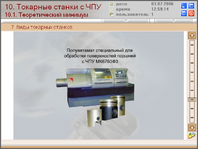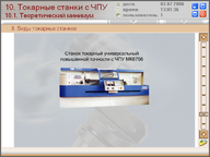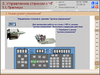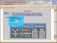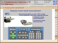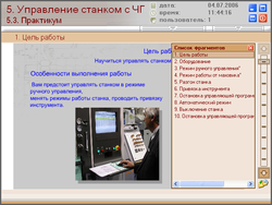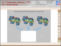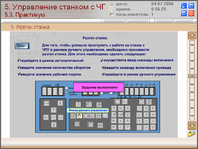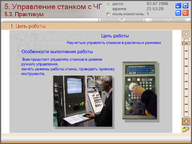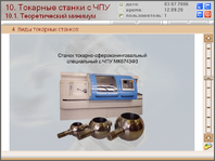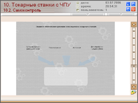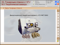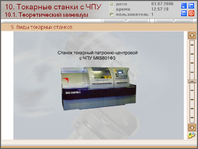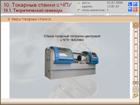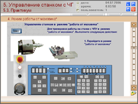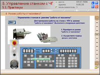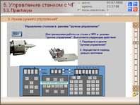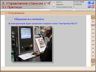 | Практическая работа | 10 42 | Практическая работа проводится на имитационной модели токарного станка с помощью ЦОР «Программное управление станков с ЧПУ». Работа разбита на 10 фрагментов: | ||