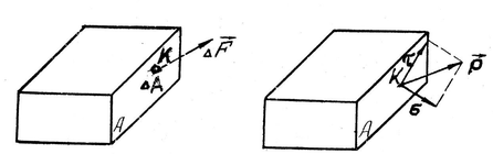 Рассмотрим сечение некоторого тела (рис. 5.2, а). В окрестности точки К выделим элементарную площадку ΔА, в пределах которой определена внутренняя сила