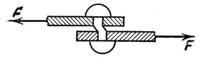 ис.4При сдвиге (рис. 4) силы направлены по нормали к продольной оси на очень близком друг от друга расстоянии, пытаясь сдвинуть в плоскости поперечного сечения одну часть стержня относительно другой.