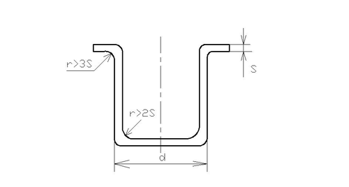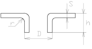 Минимально допустимые радиусы гибки должны соответствовать пластичности металла и не допускать образования трещин. Выбираются по таблицам.
