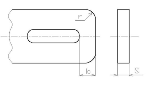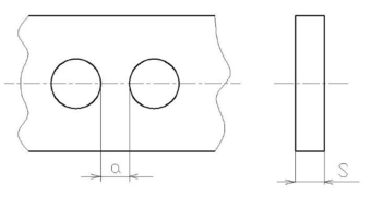 2. Расстояние между двумя отверстиями и радиусы закругления:
