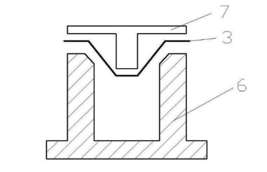 Рис. 11. Способы штамповки пластмасс: а – заготовка между матрицей (1) и пуансоном (2); б – Штампование в матрицу (2) материала эластичным пуансоном; в – Формирование материала толкателем. 1– матрица; 2 – пуансон; 3 – листовая заготовка; 4 – зажимная рама; 5 – воздушный канал; 6 – поддон; 7– толкатель;