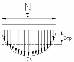 В полученном выражении Uф и f заданы заказчиком, нужно знать для расчета только Ф. Он под полюсом распределяется равномерно (рисунок 3), однако при равенстве площадей прямоугольника со стороной Вср и полуокружности с радиусом В величина магнитного поля под полюсом будет одинаковой.