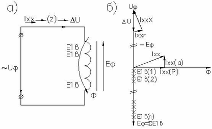 Кроме того, ток Iхх создаёт на активном и реактивном сопротивлении обмотки падение напряжения U .