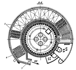 Двухстадийное сжигание топлива дает возможность растянуть факелы по высоте граней и повысить равномерность излучения по высоте радиантных труб. Конвективный змеевик, как и воздухоподогреватель, набирают секциями и размещают в кольцевой камере конвекции, расположенной соосно с цилиндрической радиантной камерой.