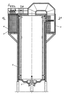 Комбинированные горелки расположены в поду печи. На стенах камеры радиации установлен одно- или двухрядный настенный трубный экран. Конвективный змеевик так же, как и воздухоподогреватель, набирают секциями и располагают в кольцевой камере конвекции, установленной соосно с цилиндрической радиантной камерой.