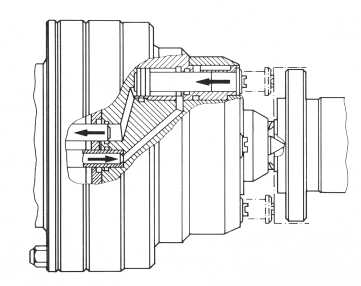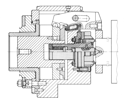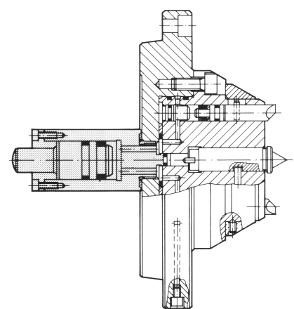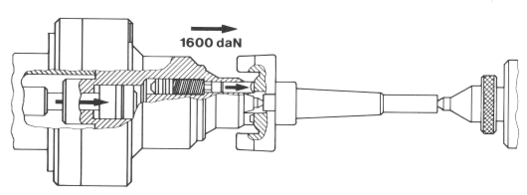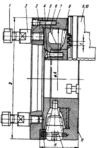 Усилие для внедрения зубцов в торец детали может быть получено от давления масла, при этом каждый зубец становится миниатюрным гидроцилиндром (плунжером). Компрессором, подающим масло под давлением, служит цилиндр, смонтированный вместо упругого элемента (пружины) обычных устойств.