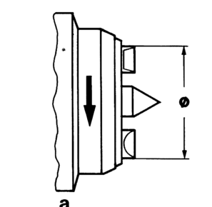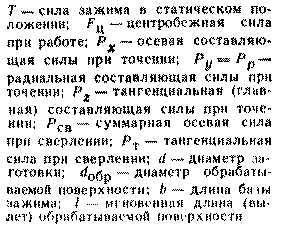 Далее следует вычислить суммарную длину ведущих кромок зубцов выбранного устройства (она равна произведению длины кромки одного зубца выбранного типа на число зубцов устройства) и поделить найденное выше усилие на суммарную длину ведущих кромок. Полученная величина удельной силы в кгс/мм должна лежать в пределах 25–35 кгс/мм. Если получилось меньше, то следует выбрать устройство меньших размеров или с меньшей длиной ведущих кромок зубцов, если больше – больших размеров или с большей длиной ведущих кромок зубцов. Диаметр окружности расположения зубцов должен быть выбран как можно больших размеров, но зубцы не должны мешать обработке детали.
